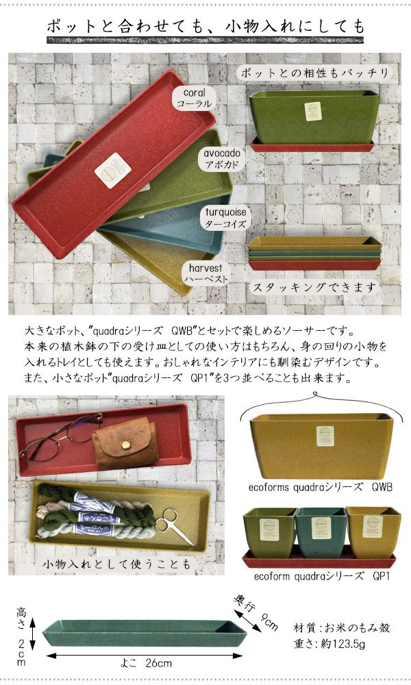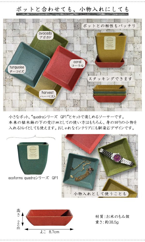 他の画像を見る 土に還る環境に優しいエコな受け皿 【送料無料】ecoforms(エコフォームズ) クアドラソーサー【SQ1】 観葉植物 多肉植物 寄せ植え ポット 鉢植え 自然に優しい エコポット ソーサー 受け皿 お皿 販売価格 ¥ 770 税込 詳細を見る お気に入りに登録する
