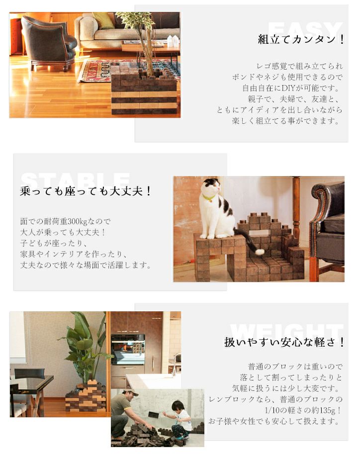 他の画像を見る 間伐材を使用した、環境に優しいインテリア&ガーデン用品ベランダやお庭の花壇、棚やイスにも形を変えて遊べるレンガ調ブロック 【送料無料】レンブロック(24個入)花壇 間仕切り 仕切り プランター 棚 椅子 DIY 組立ておもちゃ レンガ 販売価格 ¥ 10,780 税込 詳細を見る お気に入りに登録する