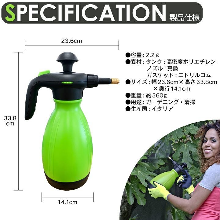 他の画像を見る 下向きでも噴霧可能なハイグレードモデル!清掃用としても使用可能 エポカ EPOCA社 噴霧器 手動式 蓄圧式スプレー GALAXIA2 360°2.2L ギャラクシア ハンディ 肥料散布 除草剤散布 清掃用品 サッシ掃除 大掃除 販売価格 ¥ 4,840 税込 詳細を見る お気に入りに登録する
