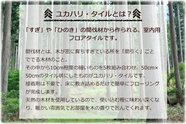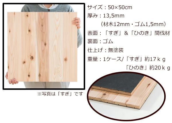 ユカハリ・タイル【ひのき(無塗装)】8枚セット 50cm×50cm×1.35cm(2平米)