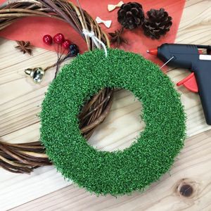 普段はゴルフの練習用として人気の人工芝(草丈)13mmをリースの形にカットしてみました!