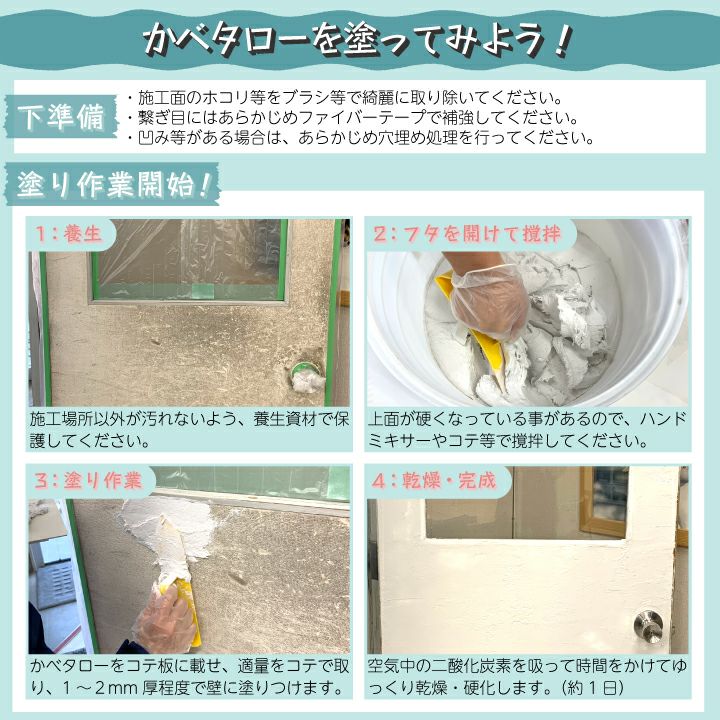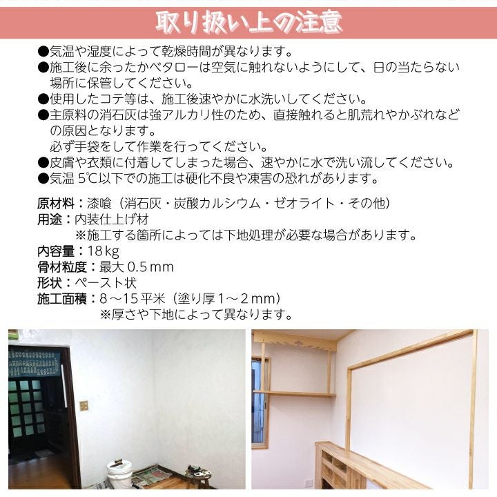 他の画像を見る 新築・リフォームに!すぐに使えて施工も簡単! かべタロー 18kg入り 内装材 新築 リフォーム DIY 漆喰 天然素材 抗ウィルス 抗菌 消臭 簡単 安心 安全 販売価格 ¥ 13,200 税込 詳細を見る お気に入りに登録する