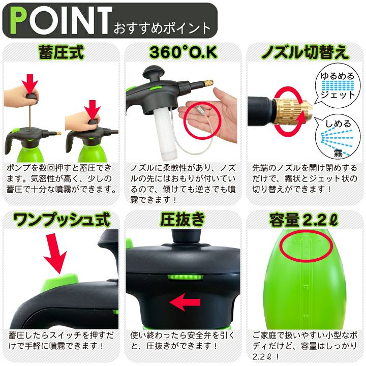 他の画像を見る 下向きでも噴霧可能なハイグレードモデル!清掃用としても使用可能 エポカ EPOCA社 噴霧器 手動式 蓄圧式スプレー GALAXIA2 360°2.2L ギャラクシア ハンディ 肥料散布 除草剤散布 清掃用品 サッシ掃除 大掃除 販売価格 ¥ 4,840 税込 詳細を見る お気に入りに登録する