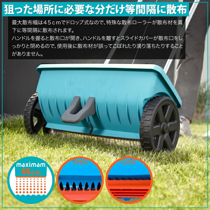他の画像を見る 肥料・種子・顆粒・砂・融雪剤など、あらゆる散布物に対応!一年中使用できる! GARDENA ドロップ式肥料散布機 Lサイズ ※北海道・沖縄・離島は別途送料を頂戴致します 販売価格 ¥ 12,650 税込 詳細を見る お気に入りに登録する