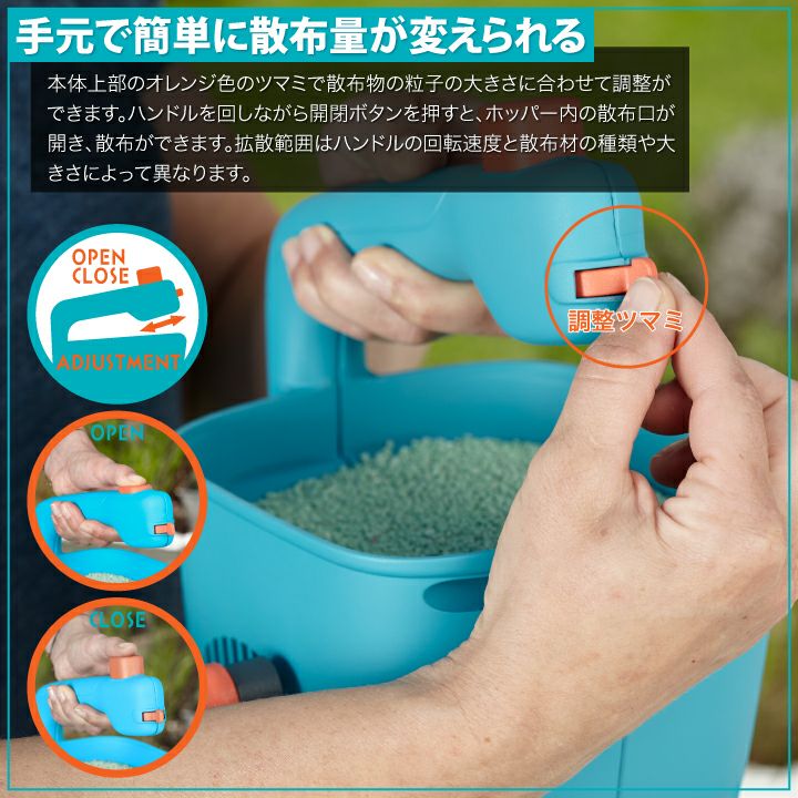 他の画像を見る 肥料・種子・顆粒・砂・道路用塩など、あらゆる散布物に対応!一年中使用できる! GARDENA ハンドスプレッダー Mサイズ 手持ち式肥料散布機 販売価格 ¥ 5,720 税込 詳細を見る お気に入りに登録する