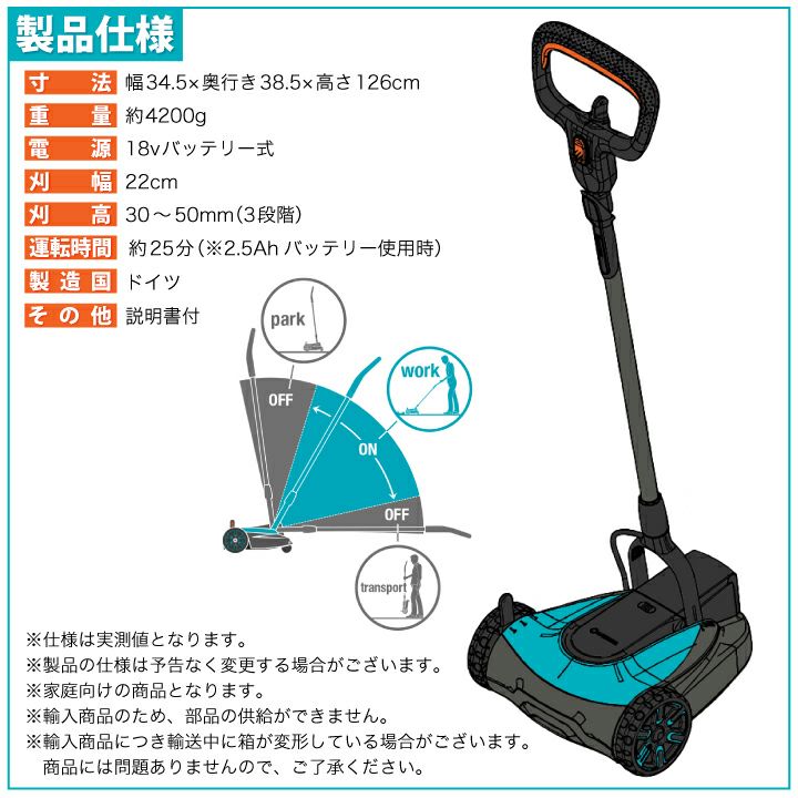 他の画像を見る 【本体のみ】軽量でコンパクトなデザイン 小回りが利くので操縦しやすい芝刈り機です。 GARDENA 充電式 芝刈り機 ハンディモアー 本体のみ 14620-56 (バッテリー、充電器は別売) 販売価格 ¥ 28,820 税込 詳細を見る お気に入りに登録する