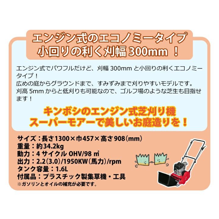 他の画像を見る 小回りの利く刈り幅30mm。エンジン式芝刈り機のエコノミータイプが新登場! 【送料無料】キンボシ ゴールデンスター エンジン式芝刈機 スーパーモアー GRS-3002M※北海道・沖縄・離島は別途送料を頂戴致します 販売価格 ¥ 302,500 税込 詳細を見る お気に入りに登録する