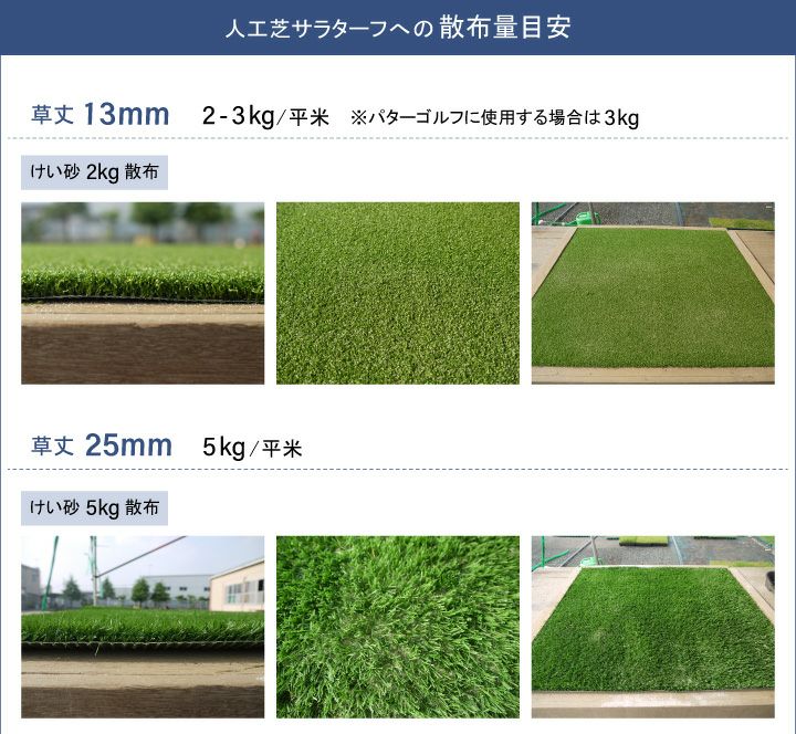 弊社人工芝サラターフへの散布量目安