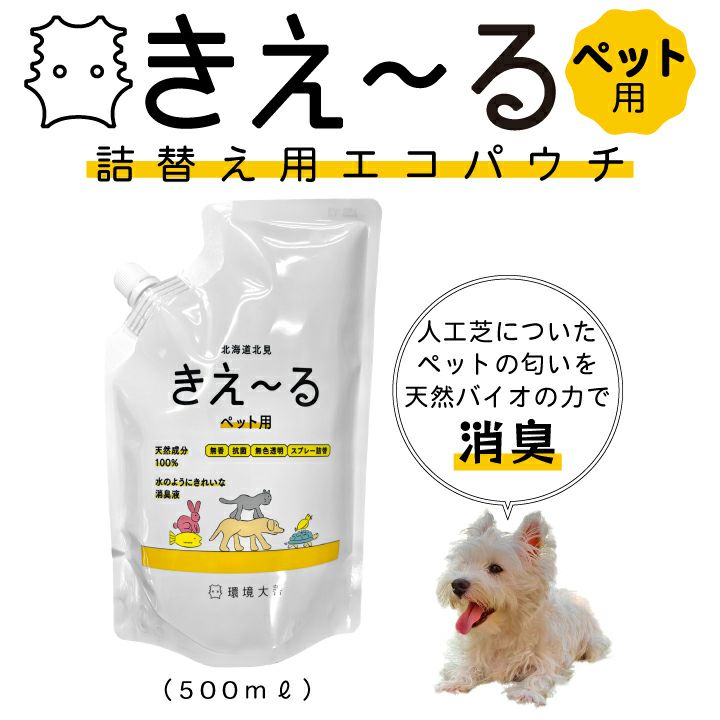他の画像を見る ペットが舐めても安全な消臭剤!人工芝についたペットの臭いをバイオの力で消臭 【送料無料】きえーる(ペット用)【詰替え用エコパウチ(500ml)】 ペット消臭・ペット臭い・バイオ消臭・人工芝ペット・国産消臭剤・無添加・きえーるセット・きえーる詰替え用 販売価格 ¥ 2,475 税込 詳細を見る お気に入りに登録する