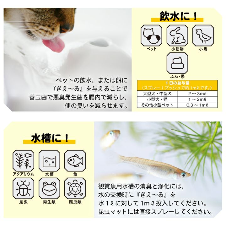 他の画像を見る ペットが舐めても安全な消臭剤!人工芝についたペットの臭いをバイオの力で消臭 【送料無料】きえーる(ペット用)【スプレー&エコパウチセット】 ペット消臭・ペット臭い・バイオ消臭・人工芝ペット・国産消臭剤・無添加・きえーるセット・きえーる詰替え用 販売価格 ¥ 3,520 税込 詳細を見る お気に入りに登録する