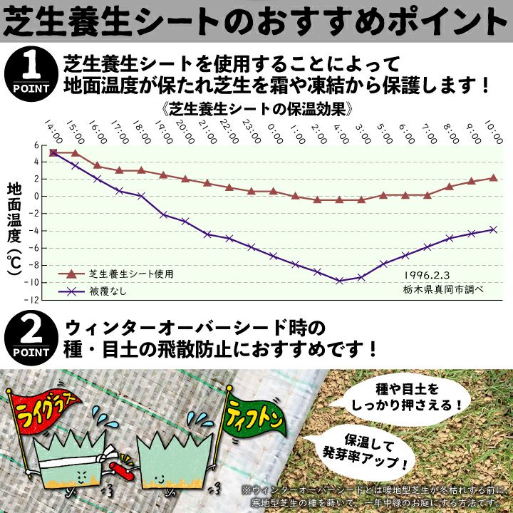 他の画像を見る 日光を最大限に透過するので、保温効果が得られます! 芝生養生シート(透明タイプ)2m×5m 芝生養生 芝生保護シート 常緑 芝生生育 芝生育成 損傷回復 販売価格 ¥ 8,250 税込 詳細を見る お気に入りに登録する