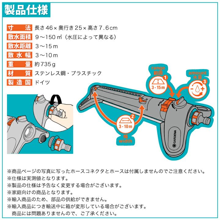 他の画像を見る お庭への散水が、すぐに始められるセット商品! GARDENA 首振式スプリンクラー Aqua Zoom S ホース&コネクターセット 散水機 セット ホース コネクター 庭 芝生 園芸用品 散水器 ガルデナ 販売価格 ¥ 14,960 税込 詳細を見る お気に入りに登録する