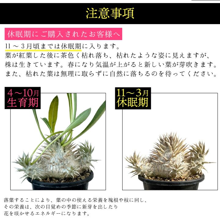 他の画像を見る 人気の塊根植物 パキポディウム デンシフローラム 実生2年目 2.5号鉢 塊根植物 コーデクッス 観葉植物 人気種 キョウチクトウ科 パキポディウム属 Pachypodium densiflorum 販売価格 ¥ 4,620 税込 詳細を見る お気に入りに登録する