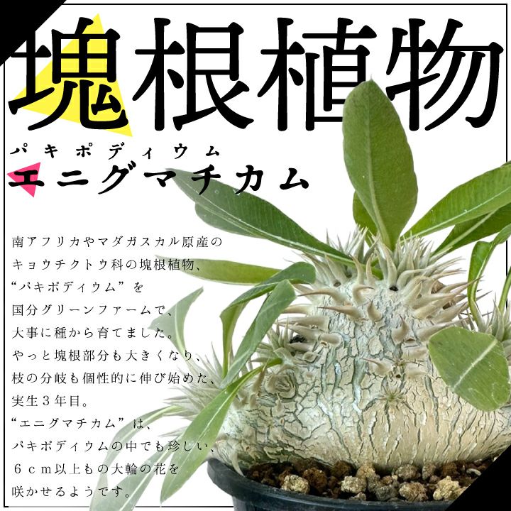 他の画像を見る 人気の塊根植物 パキポディウム エニグマチカム 実生3年目 3号鉢 塊根植物 コーデクッス 観葉植物 希少種 キョウチクトウ科 パキポディウム属 Pachypodium enigmaticum 販売価格 ¥ 19,800 税込 詳細を見る お気に入りに登録する