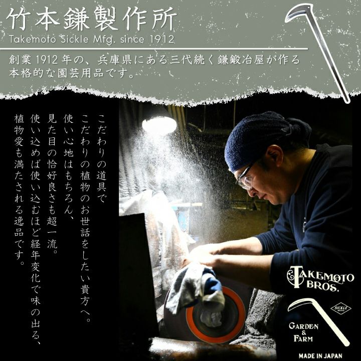 創業1912年の、兵庫県にある三代続く鎌鍛冶屋が作る本格的な園芸用品です。