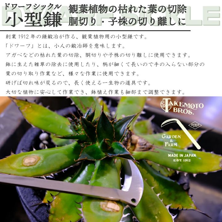 竹本鎌製作所 ドワーフシックル 鍛冶屋 小型鎌 観葉植物 コンパクト鎌 胴切り 切り離し 子株 切除 ステンレス dwarf sickle