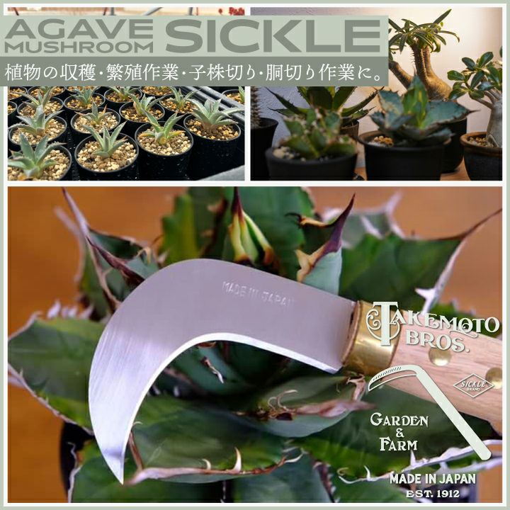 竹本鎌製作所 アガベ・キノコ鎌 鍛冶屋 鎌 観葉植物 収穫 繁殖 胴切り 子株切り ステンレス agave・mushroom sickle
