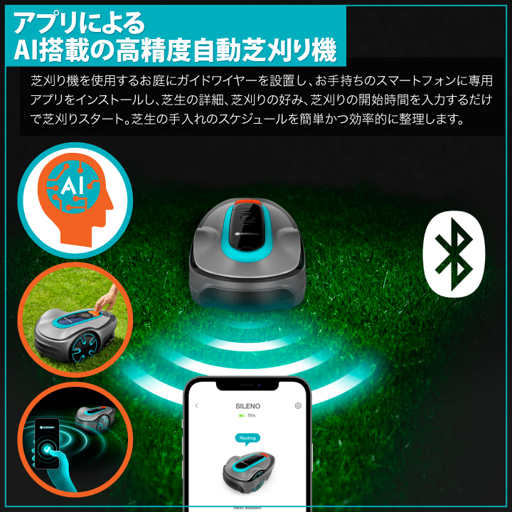 Bluetooth®接続による簡単操作、アプリで自動芝刈り、手軽に始められます!