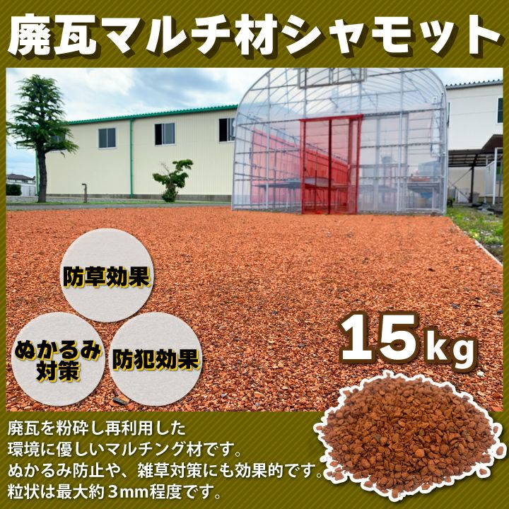 他の画像を見る 環境にやさしいマルチング材!ぬかるみ防止や雑草対策にも! 廃瓦マルチ材シャモット15kg 粒形3mm以下 リサイクル瓦チップ 瓦チップ 保水 小さめ 雑草対策 雑草防止 雑草抑制 ぬかるみ対策 防犯効果 防草効果 マルチング材 廃瓦 再利用 SDGs ガーデニング 植木周り 砂利 庭 ジャリ エクステリア 駐車場スリット デザイン 外構 販売価格 ¥ 3,300 税込 詳細を見る お気に入りに登録する