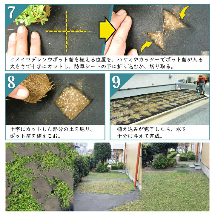 他の画像を見る ポット苗が広がるまでの間の雑草を抑制! 根が通る素材なので、広がった根がしっかり張ります。 ヒメイワダレソウポット苗専用防草シート【2m×5m】U字留めピン(30本付)【透水性通根シート】 ※今なら抑え丸(30個)プレゼント! 販売価格 ¥ 9,900 税込 詳細を見る お気に入りに登録する