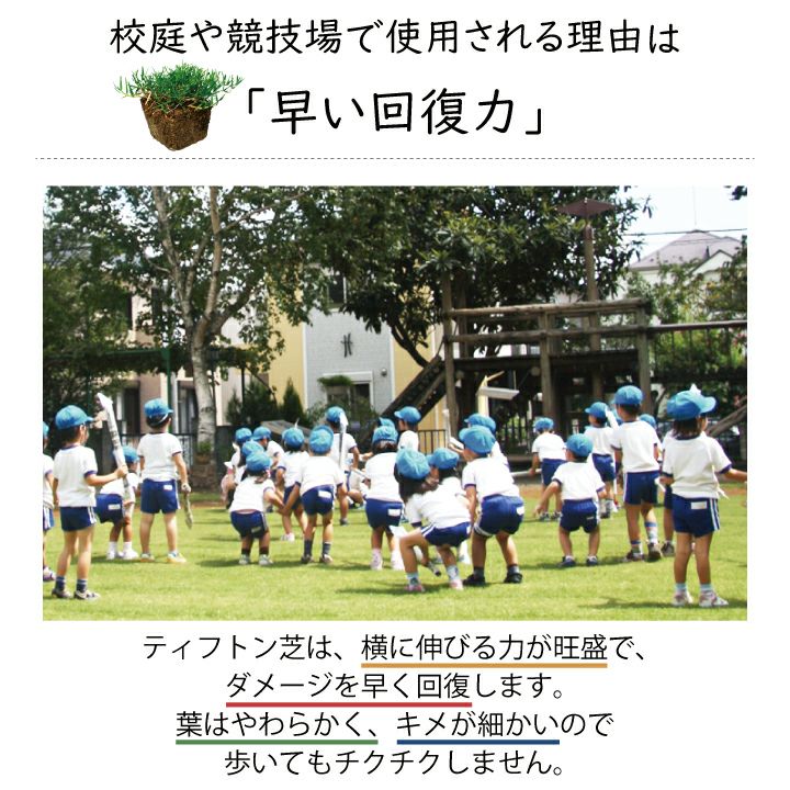 他の画像を見る 魔法のようにぐんぐん伸びる天然芝生。踏圧にも強い! ティフトン芝 ポット苗(キューブ苗)ティフトン芝419 50苗 【10平米分】暖地型西洋芝生:レビューを書いたら次回使える5%OFFクーポン&肥料プレゼント!擦り切れや踏圧に強い暖地型西洋芝生 予約商品 こちらは予約商品です 予約販売価格 ¥ 5,830 税込 予約受付開始前です。 予約受付期間 2026/03/16 0:00 〜 2026/03/31 23:59 詳細を見る お気に入りに登録する