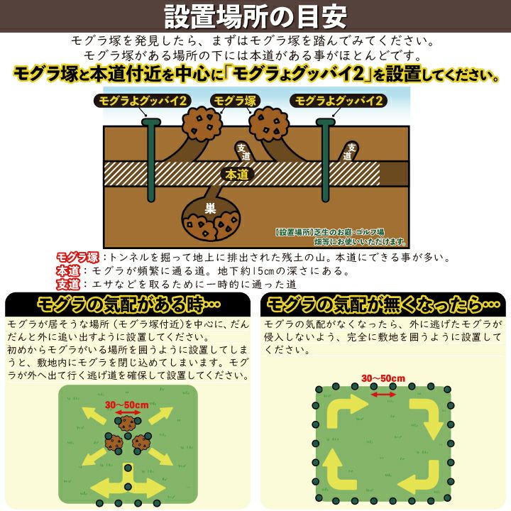 他の画像を見る モグラよけ もぐら 対策 柵でブロック!モグラの侵入をシャットアウト!薬剤を使用しないモグラ対策【モグ柵(30個入り)】 もぐ柵 農作物被害 家庭菜園 販売価格 ¥ 7,524 税込 詳細を見る お気に入りに登録する