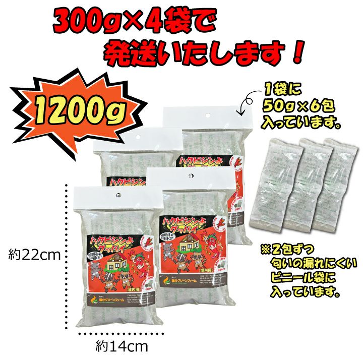 【ハクビシンよグッバイ(屋内用)】使いやすい小袋タイプ(50g×6包入)4個セット<96平米分>