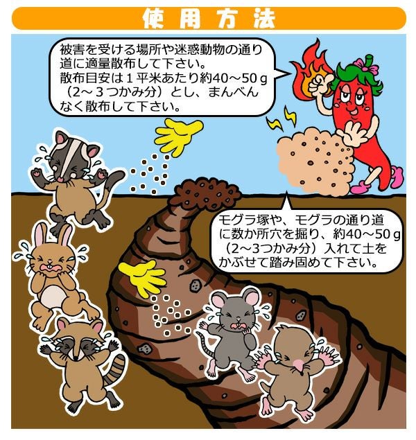 地面に撒くだけで簡単に害獣対策!