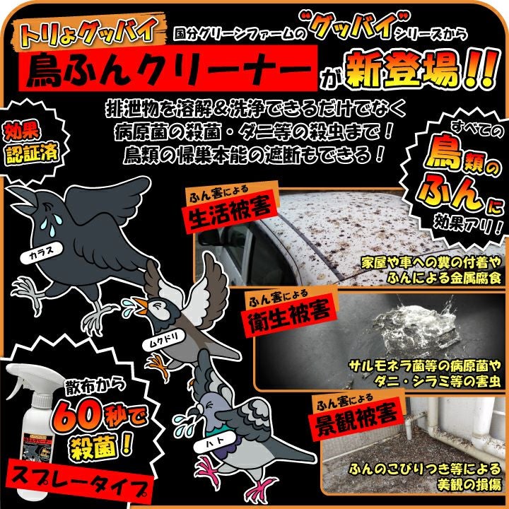 鳥類用忌避剤スプレータイプと鳥ふんを洗浄、殺菌クリーナーのお得セット