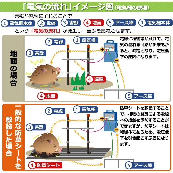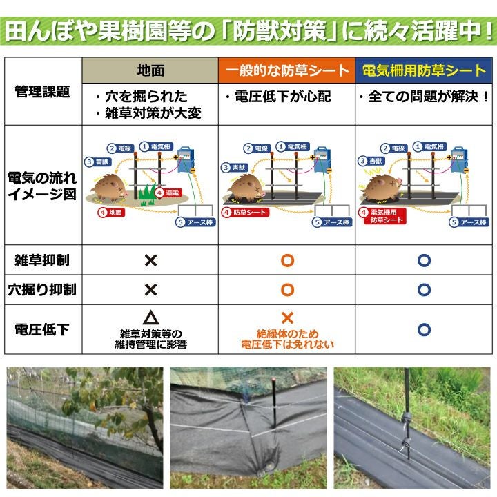 他の画像を見る 雑草繁茂と、害獣の侵入を抑制!導電性ヤーンを織り込んだ電気柵用の防草シート 電気柵用防草シート(W0.6×50m) 電気柵 電気柵管理 電圧低下 漏電防止 農作物被害 害獣対策 シカよけ イノシシ対策 雑草対策 防草効果 導電性 販売価格 ¥ 13,805 税込 カートに入れる お気に入りに登録する