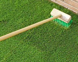 デッキブラシ等で芝草を起こすと、つなぎ目が目立たなくなり、美しい仕上がりになります。