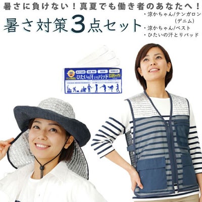 暑さ対策セット(涼かちゃん・ベスト・ひたいの汗取りセット) 農作業 外仕事 熱中症対策 アウトドアのレビューを書く