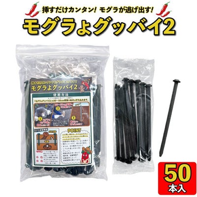 モグラよグッバイ2(50本入)モグラ 撃退 もぐら 退治 モグラよけ モグラ退治方法 モグラ 対策に パワーアップして登場!唐辛子入りでモグラ撃退!のレビューを書く