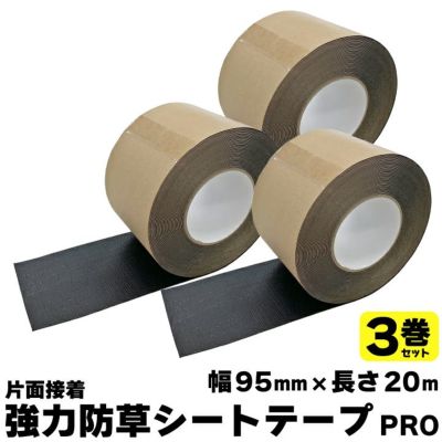強力防草シートテープPRO3巻セット 幅95mm×20m 黒 片面接着 お得セット 防草シートつなぎ目 ジョイント ブロック境目 雑草抑制 雑草 隙間 境目 補修 連結部のレビューを書く