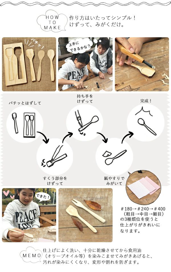 他の画像を見る 木を削ってやすりをかけて、作る喜びを感じる 【送料無料・メール便配送・代引き不可】ひのきのカトラリーキット ヒトテマキット(フォーク)手作りフォーク 工作 手作りキット クラフト オリジナルフォーク 創作 夏休み 宿題 手作り 工作 アウトドア キャンプ DIY 木工 制作 国産ひのき 販売価格 ¥ 1,210 税込 詳細を見る お気に入りに登録する
