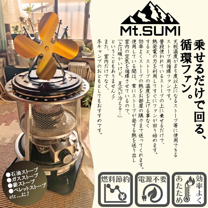 他の画像を見る 電源不要!熱の力でファンが回転。あたたかい空気をお部屋に行き渡らせる! 送料無料 エコファン ストーブファン ストーブ用 循環ファン 暖炉ファン エコストーブファン 薪ストーブ用 石油ストーブ 冬キャンプ バーベキュー キャンプ用品 キャンプ ストーブ Mt.SUMI(マウントスミ) 販売価格 ¥ 9,900 税込 詳細を見る お気に入りに登録する