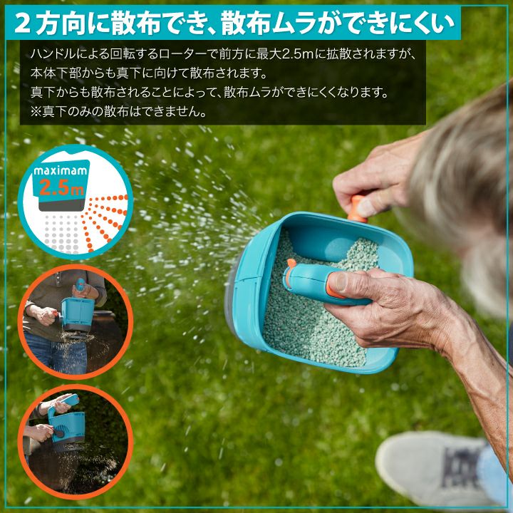 他の画像を見る 肥料・種子・顆粒・砂・道路用塩など、あらゆる散布物に対応!一年中使用できる! GARDENA ハンドスプレッダー Mサイズ 手持ち式肥料散布機 販売価格 ¥ 5,720 税込 詳細を見る お気に入りに登録する