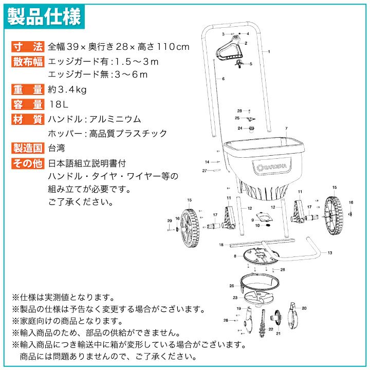 他の画像を見る 肥料・種子・顆粒・砂・融雪剤など、あらゆる散布物に対応!一年中使用できる! GARDENA ロータリー式肥料散布機 XLサイズ ※北海道・沖縄・離島は別途送料を頂戴致します 販売価格 ¥ 19,800 税込 詳細を見る お気に入りに登録する