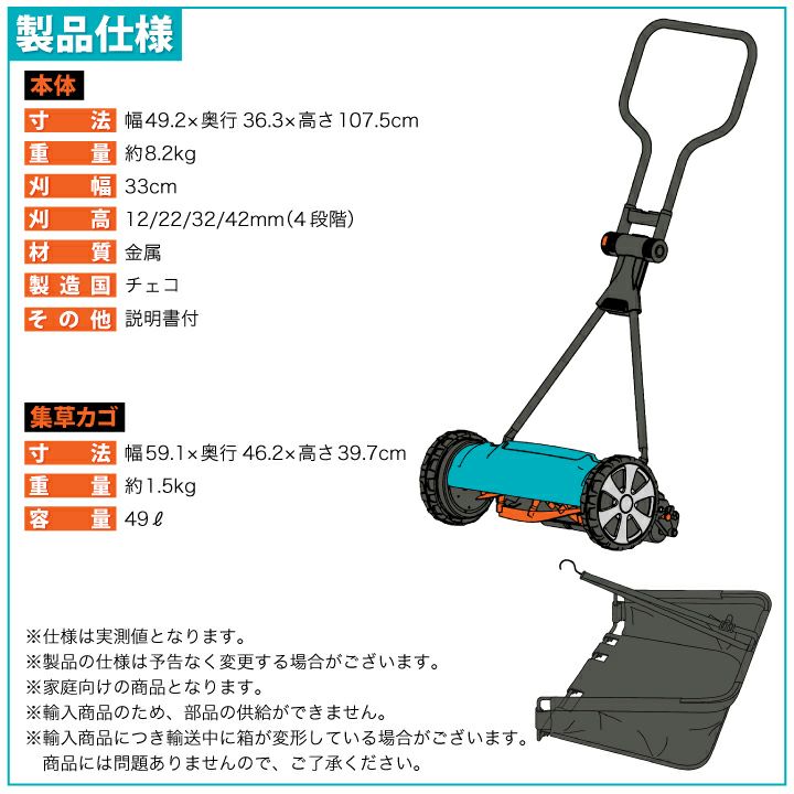 他の画像を見る 小回りの利くコンパクトさ、刈り音が静かで楽々芝刈り。集草バック付き 【集草バッグ付】 GARDENA ローンモア330 手押し芝刈り機 手動式 刈幅33cm 04027-20 販売価格 ¥ 31,020 税込 在庫切れ 詳細を見る お気に入りに登録する