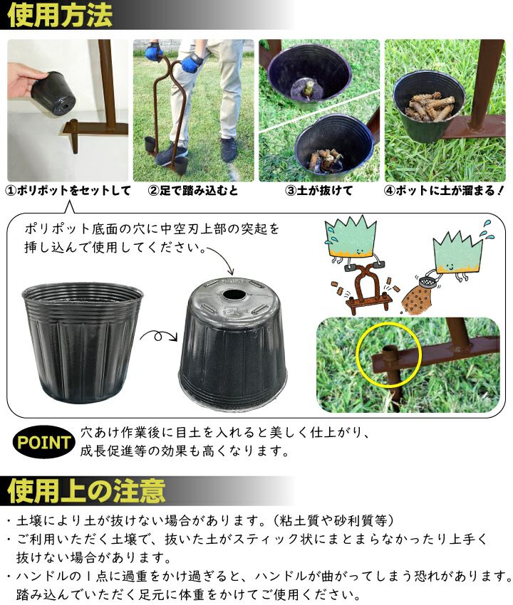 他の画像を見る 硬くなった土をエアレーションして、成長促進! キンボシ ローンパンチX 芝生のエアレーション 便利なポリポット2個付き 穴あけパンチ 販売価格 ¥ 4,620 税込 詳細を見る お気に入りに登録する