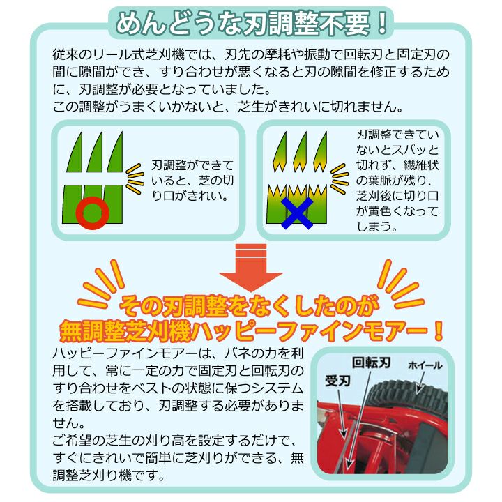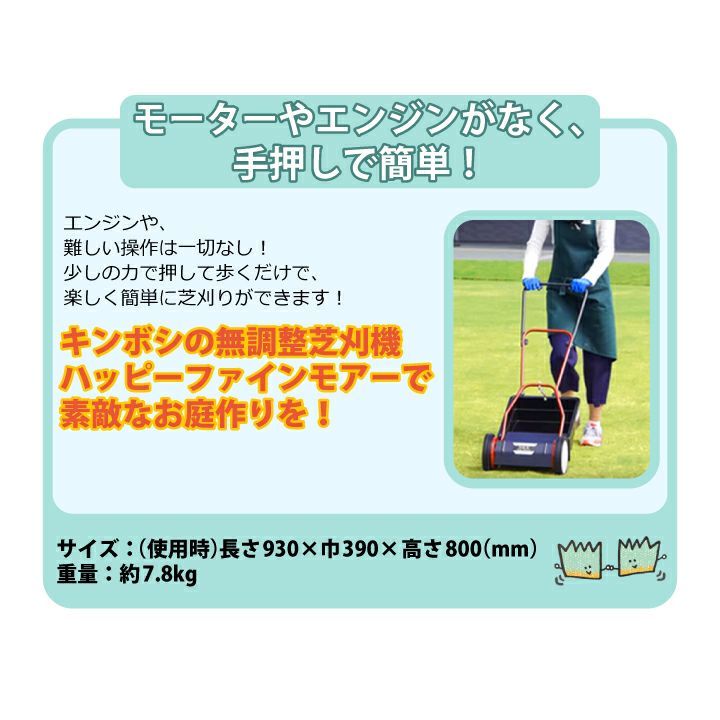 他の画像を見る モーターやエンジンがなく、刃調整も不要! 【手動式芝刈機】キンボシ ゴールデンスター ハッピーファインモアー GFF-2500H 販売価格 ¥ 45,650 税込 詳細を見る お気に入りに登録する