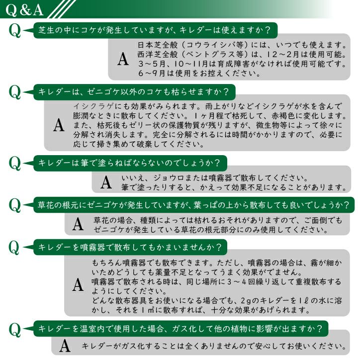 他の画像を見る 高麗芝やティフトン芝にも使用可能!ジョウロで手軽に散布できます。 【送料無料】ゼニゴケやイシクラゲ、藻類用の除草剤 キレダー水和剤(2g×10袋)3箱セット 販売価格 ¥ 3,960 税込 詳細を見る お気に入りに登録する